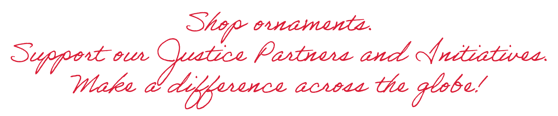 This Christmas give the gift of HOPE by purchasing ornaments from the Giving Wall. Every year, we sell handmade ornaments that support our Justice Partners and Initiatives, who are making a difference and impacting the lives of vulnerable children and families across the globe.